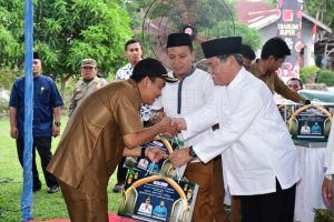 Acara di rangkai dengan pemberian santunan anak yatim dan piatu serta pemberian bingkisan kepada para Kepala Desa.