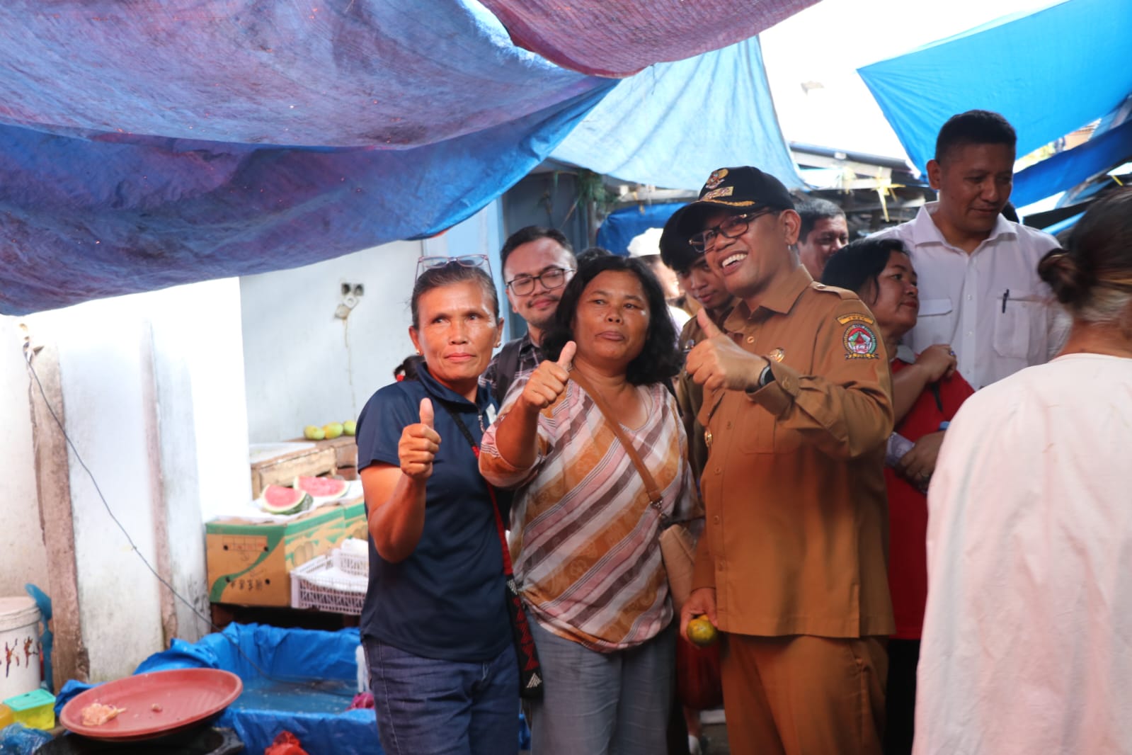 “Ini masukan mereka. Jadi nanti pedagang yang ada di luar pelan-pelan harus diatur agar masuk ke dalam supaya semua pembeli masuk ke sini. Jadi jualan pedagang ini juga sama-sama laku,” tuturnya kepada petugas pasar tumpah Laguboti.