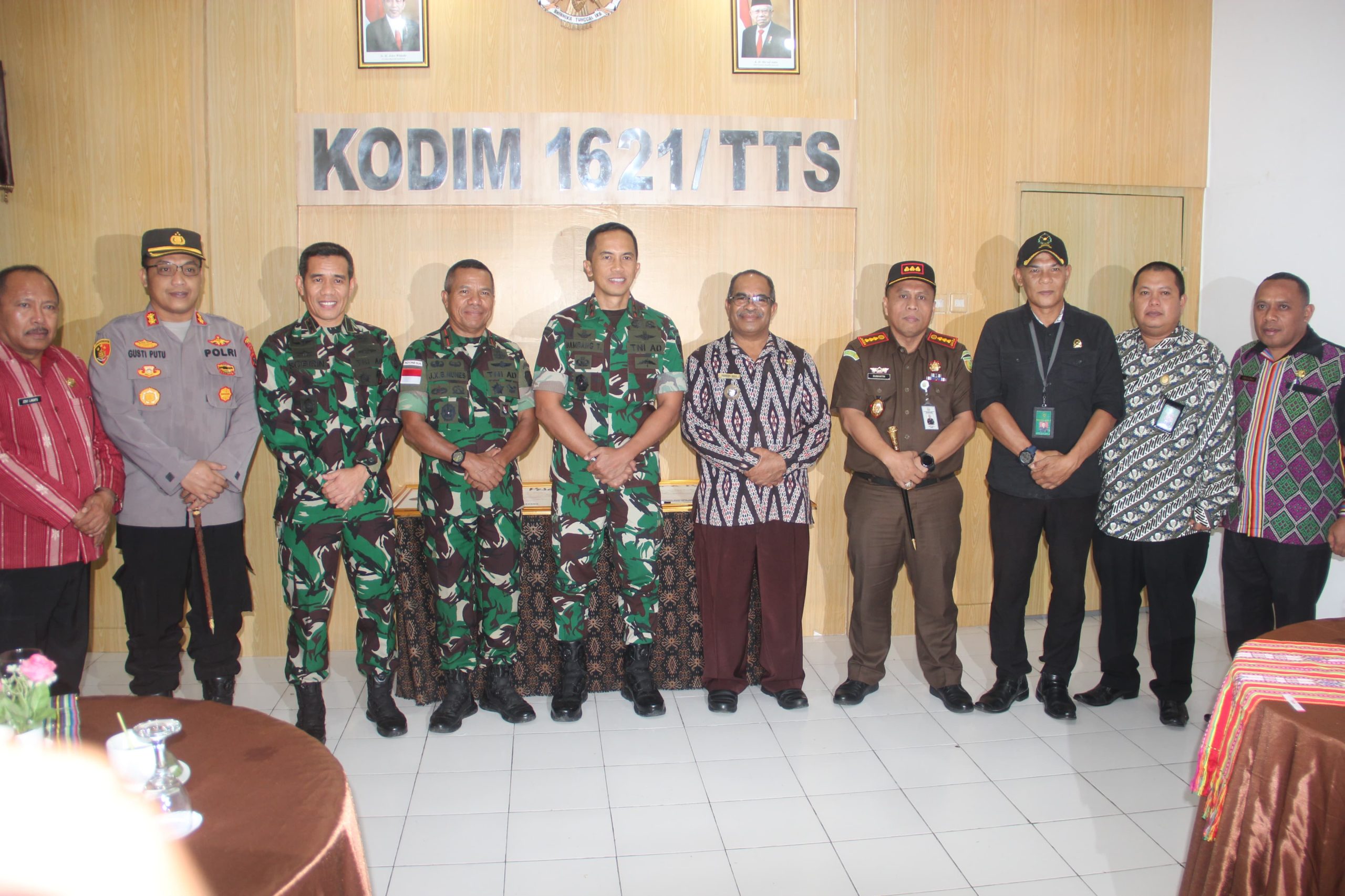 Pangdam IX/Udayana dan Danrem 161/Wirasakti beserta rombongan tiba di Makodim 1621/TTS dan disambut oleh Pj Bupati TTS, Seperius E Sipa, M.Si, Dandim 1621/TTS Letkol Inf Sobirin, S.Ag .,M.Si, bersama Ketua Persit KCK Cabang XX Dim 1621/TTS Ny. Nova Sobirin, Kapolres TTS AKBP I Gusti Putu Suka Arsa S. Ik. Kajari TTS Sumantri S.H, Ketua Pengadilan Agama TTS Dr Muslihat S. Hi, M. H,