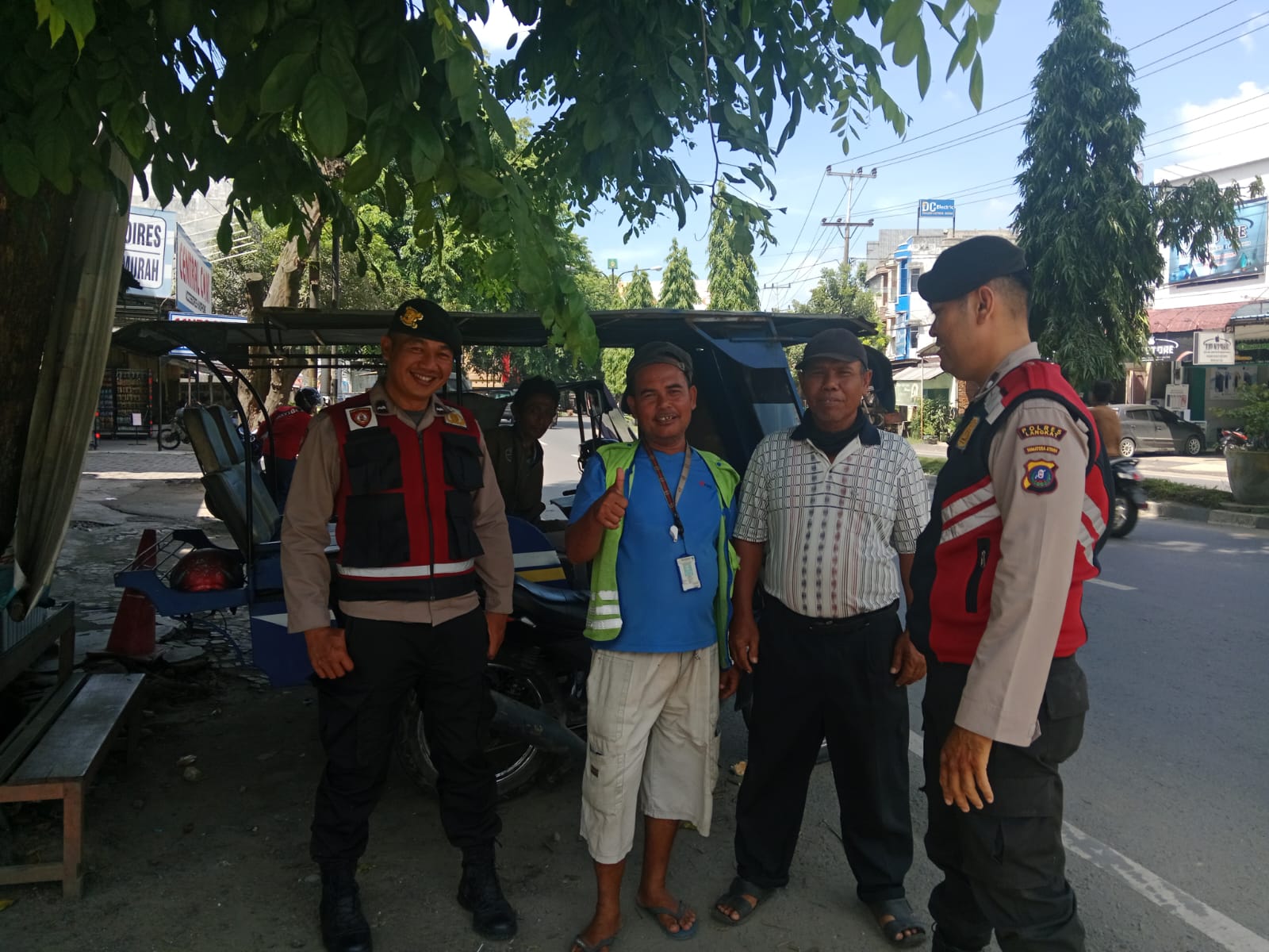 TEMPO86.COM //LANGKAT ( SUMUT )-Personil Sat samapta Polres Langkat Aipda Muheri, Aipda N. Pasaribu, Bripka Zulfan, Bripka Rawab Siregar dan Bripka Mey Priyanto, melaksanakan patroli dialogis sekaligus cooling system jelang pilkada 2024 ke Bank BRI Cabang Stabat, Seputaran Jln. Sudirman Stabat dusun VI Desa Kwala Bingai, Kabupaten. Langkat, Sabtu (06/07/2024).