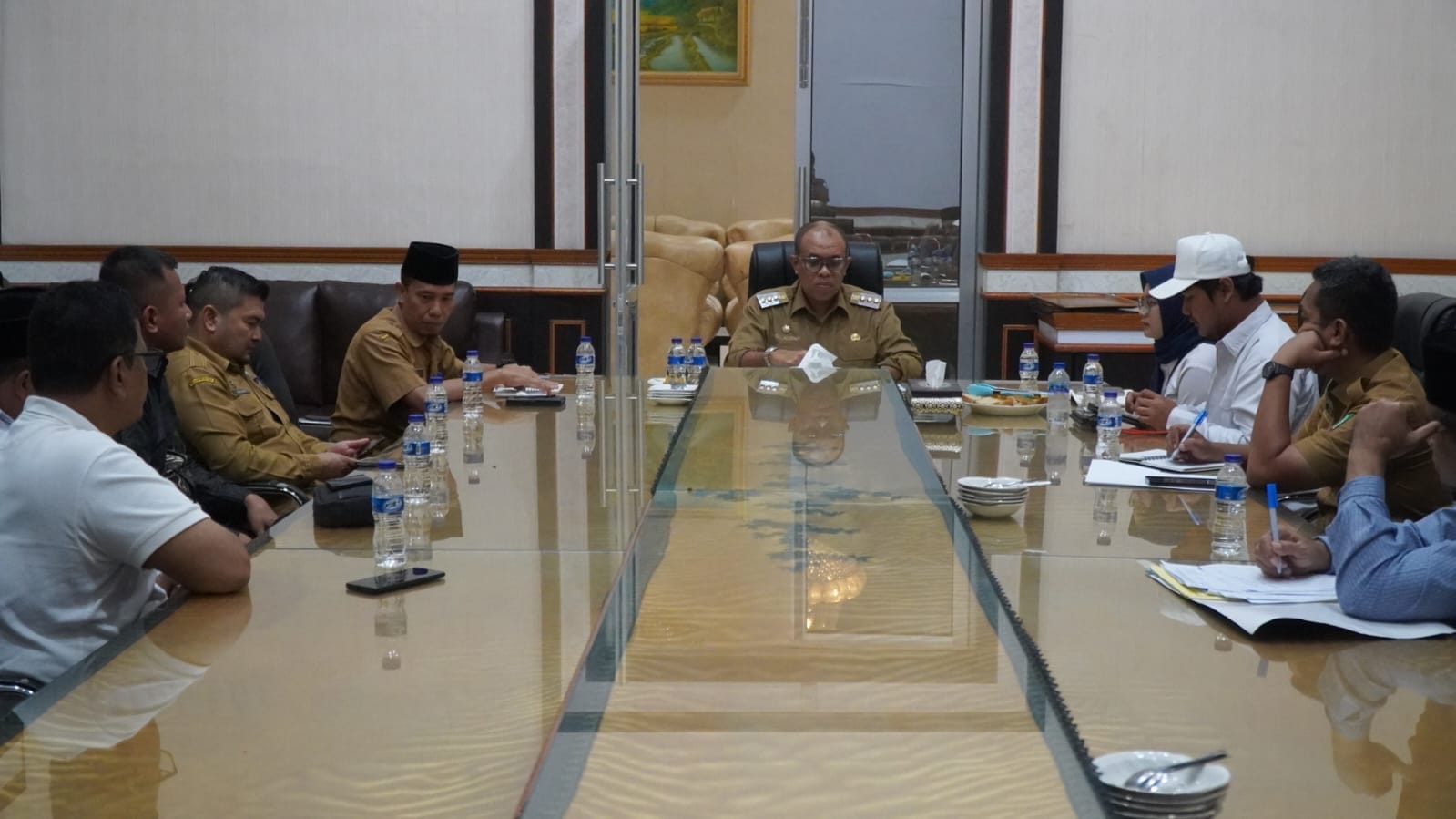 Turut Hadir Analisis Kebijakan Ahli Utama dr. H. Indra Salahudin, M.Kes., M.M, Kadis Koperasi Langkat H. Syahrizal, S.Sos,. M.Si, Kadis Perindag Langkat Ikhsan Aprija, S.STP., M.SI, Kadis Kominfo Langkat Wahyudiharto, S.STP., M.Si, Tenaga Ahli Bupati H. Sujarno S.Sos, Manager Area PT. HK Elang Ghiffari, Officer Umum PT. HK Sartika Reulina, Ketua KAHMI Kab. Langkat Suhendro, Wakil Ketua KAHMI Langkat Rahmat Rinaldi dan Samsul Harahap.