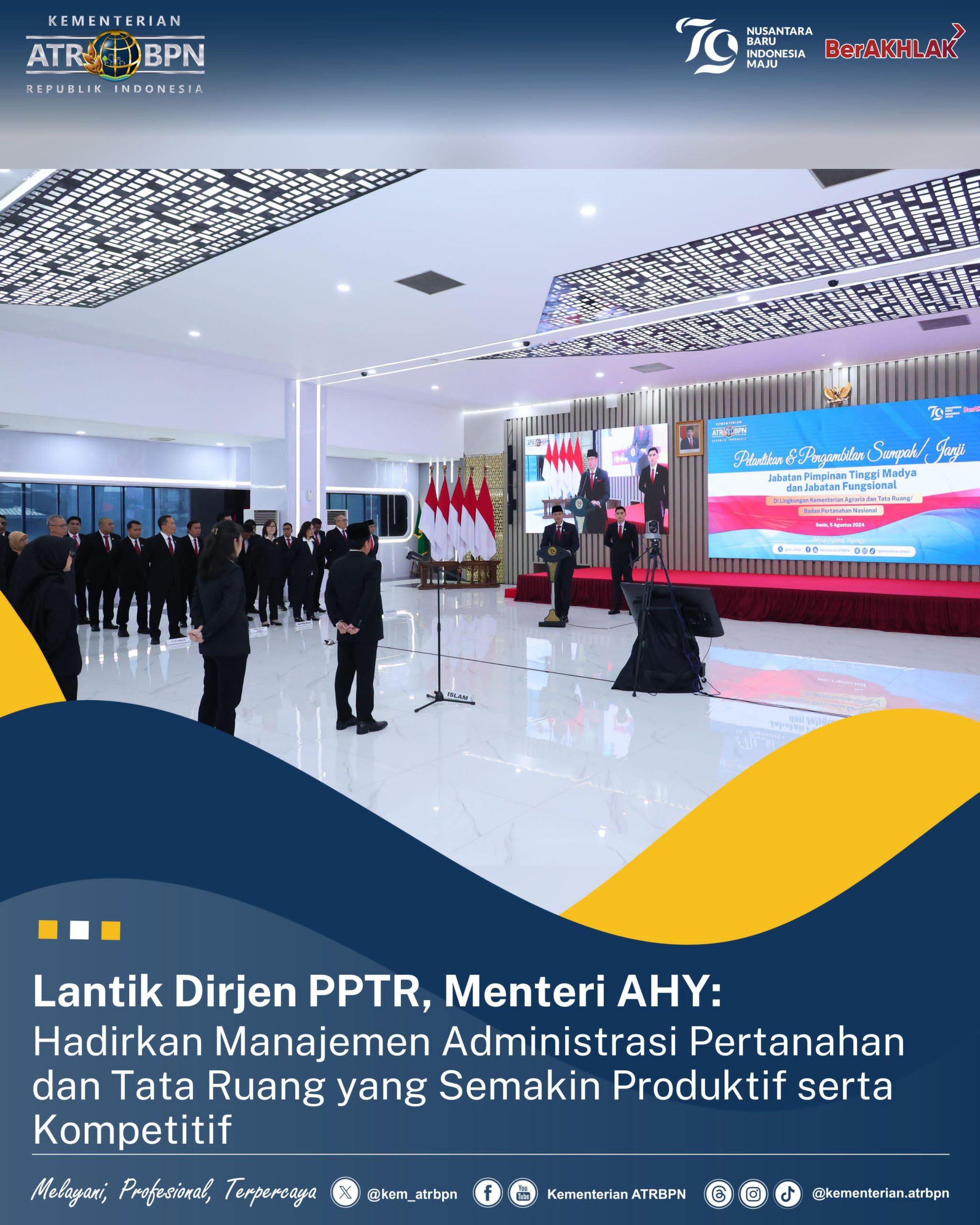 Lantik Dirjen PPTR, Menteri AHY: Hadirkan Manajemen Administrasi Pertanahan dan Tata Ruang yang Semakin Produktif serta Kompetitif