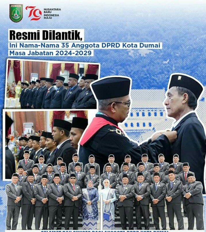 DUMAI (RIAU) TEMPO86.COM// 35 orang Anggota DPRD Kota Dumai yang terpilih pada Pemilu Serentak 14 Februari 2024 melaksanakan Pengucapan Sumpah Janji bertempat di Ruang Paripurna Kantor DPRD Kota Dumai, Selasa (3/9/2024).