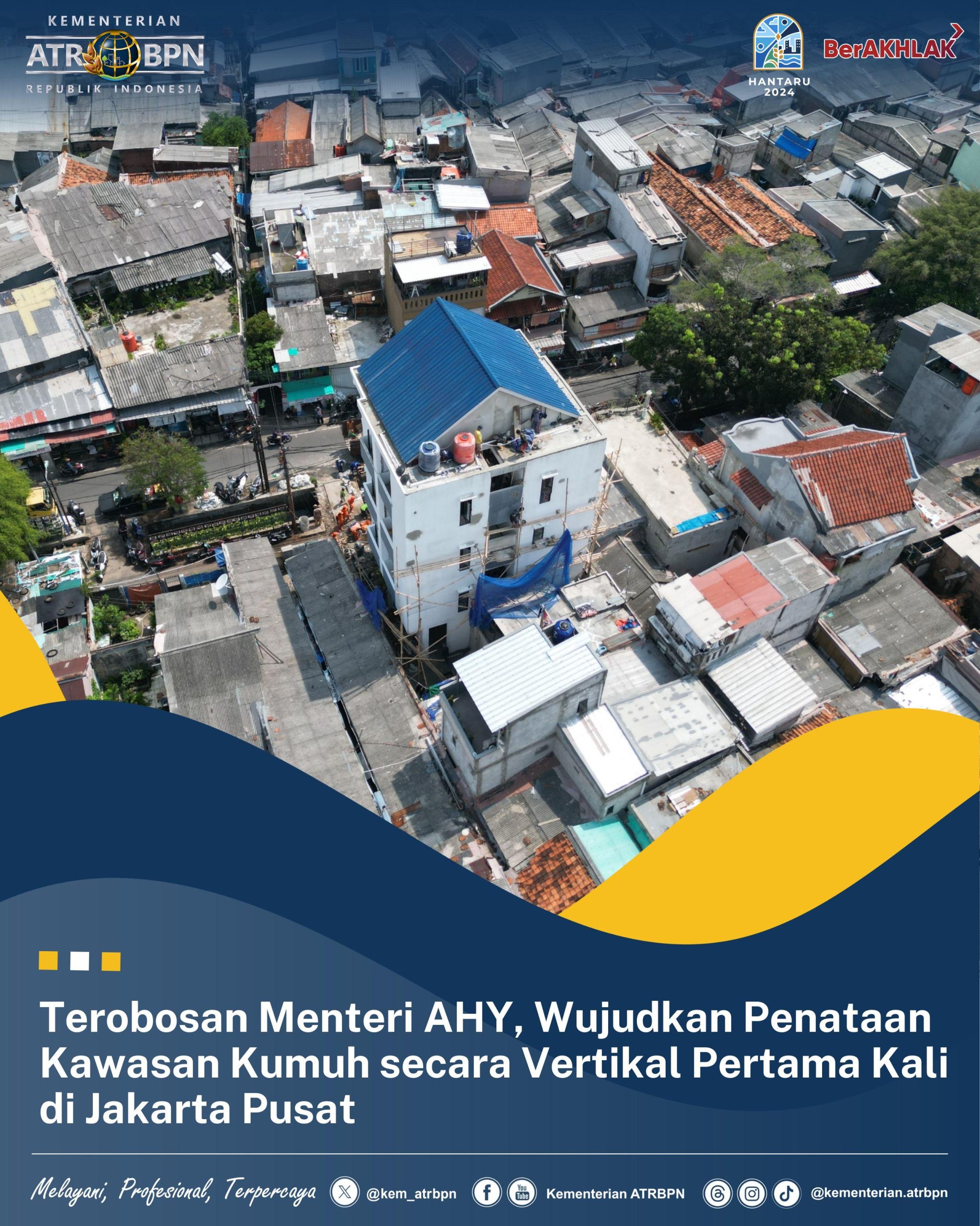 Jakarta,Tempo86.com – Menteri Agraria dan Tata Ruang/Kepala Badan Pertanahan Nasional (ATR/BPN), Agus Harimurti Yudhoyono (AHY) melakukan terobosan baru dalam mewujudkan penataan kawasan kumuh di Indonesia. Penataan kawasan ini diimplementasikan melalui program Perbaikan Rumah dan Konsolidasi Tanah Vertikal Rumah Susun Cinta Damai yang berlokasi di Kelurahan Tanah Tinggi, Kecamatan Johar Baru, Jakarta Pusat yang peresmiannya dilakukan pada Jumat (27/09/2024).