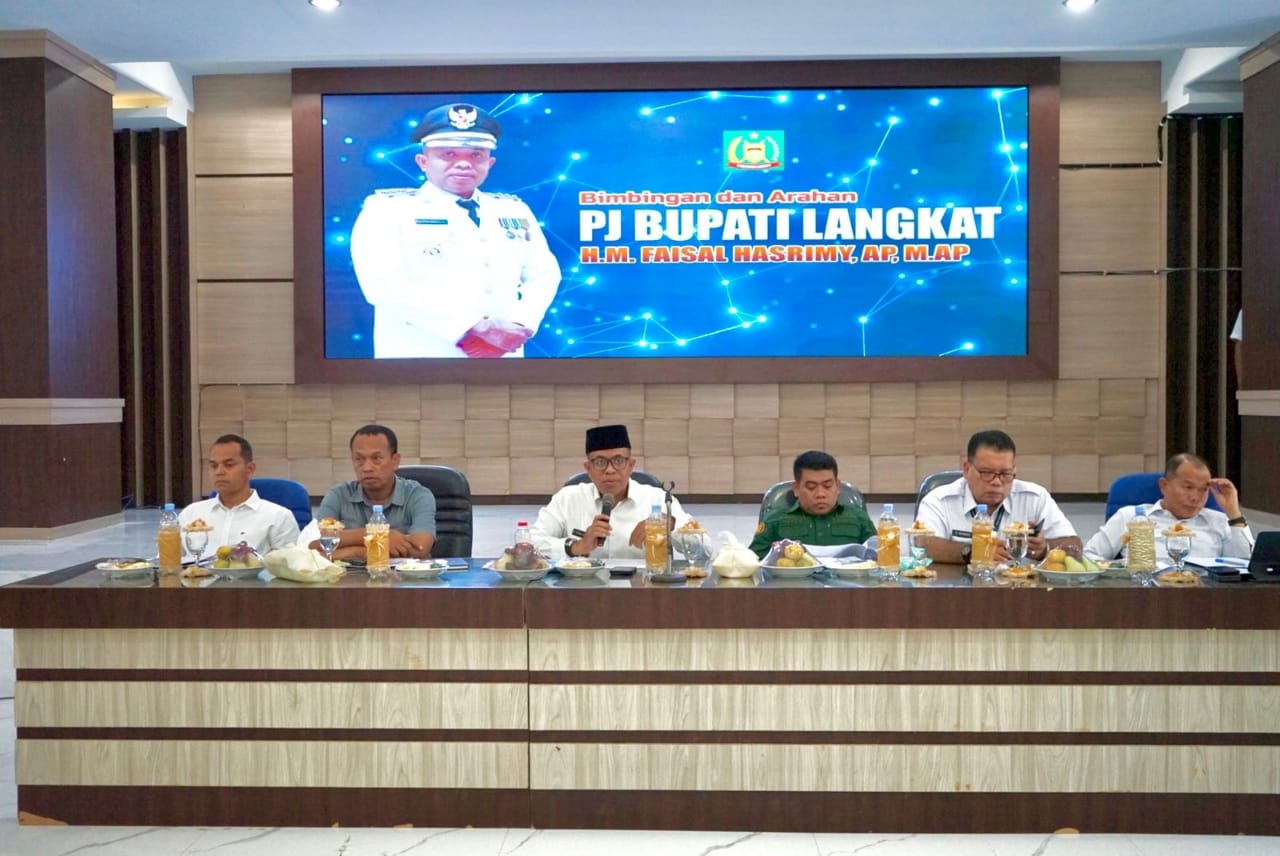 LANGKAT (SUMUT) TEMPO86.COM//Pejabat Bupati Langkat, H.M. Faisal Hasrimy, A.P., M.A.P., memimpin Rapat Koordinasi Pemerintahan (Rakorpem) Kabupaten Langkat yang membahas sejumlah isu penting yang tengah dihadapi daerah. Rakorpem yang diadakan pada Rabu (23/10/2024) di ruang pola Kantor Bupati Langkat ini turut dihadiri oleh jajaran Forkopimda, Sekretaris Daerah H. Amril, S.Sos., M.A.P., para kepala Organisasi Perangkat Daerah (OPD), BNNK Langkat, KPU, Bawaslu, BPN Langkat, serta para camat se-Kabupaten Langkat.