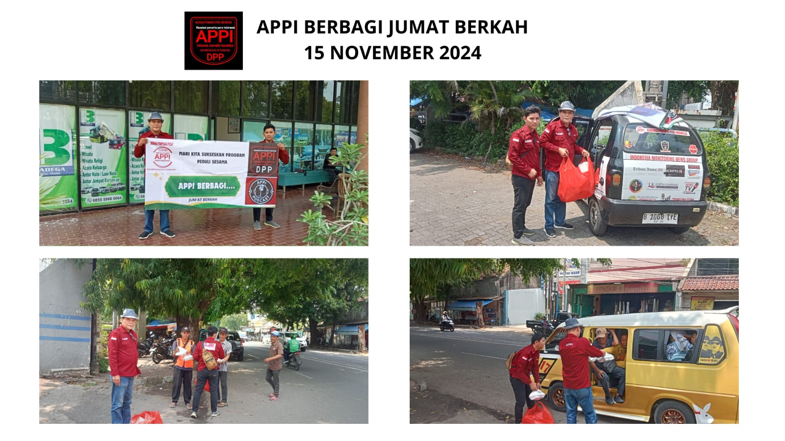 KARAWANG (JABAR) TEMPO86.COM//DPP Asosiasi Pewarta Pers Indonesia (APPI) kembali menunjukkan komitmennya dalam program kepedulian sosial dengan membagikan 300 paket makan siang kepada masyarakat yang membutuhkan di Kota Karawang. Kegiatan ini merupakan bagian dari program rutin “Jumat Berkah” yang diselenggarakan oleh APPI dengan harapan dapat membantu meringankan beban masyarakat.