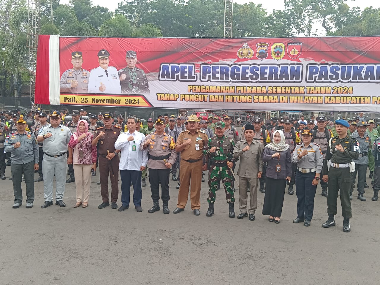 Sebanyak 1.446 personel gabungan mengikuti apel untuk pengamanan TPS dalam pilkada 2024. Apel diikuti oleh personil polri 753 personel, brimob 50 personel, Satpol PP 50 personel, dan Linmas 593 personel.