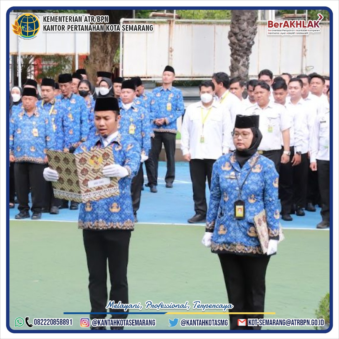 Upacara Bendera Peringatan Hari Ulang Tahun Ke-53 Korps Pegawai Republik Indonesia KORPRI) berlangsung di lapangan Kanwil BPN Provinsi Jawa Tengah dan diikuti oleh seluruh pegawai Kanwil BPN provinsi Jawa Tengah dan Kantor Pertanahan Kota Semarang, Jumat (29/11/2024).