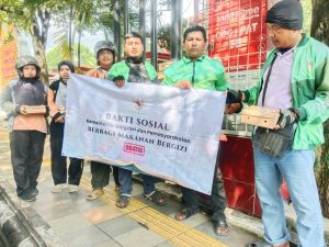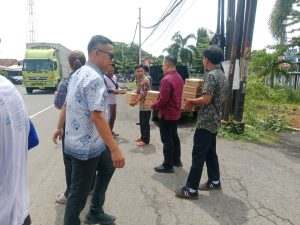 Penyaluran nasi box kembali sasar ke jalan- jalan dan dibagikan kepada pengguna jalan, tukang becak, Ojek online dan anak-anak pank.