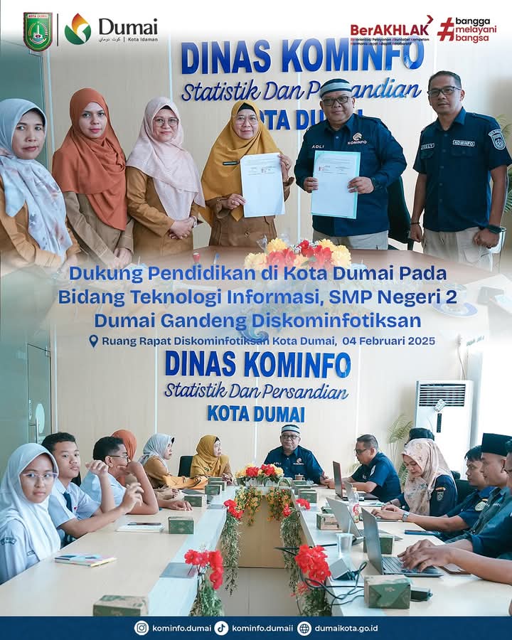 Perjanjian kerjasama ini ditandatangani langsung oleh Kepala Diskominfotiksan, Drs.H.Khairil Adli, M.Si dan  Kepala SMP Negeri 2 Dumai, Hj.Saidatun Syabibah, S.Pd., M.Pd.