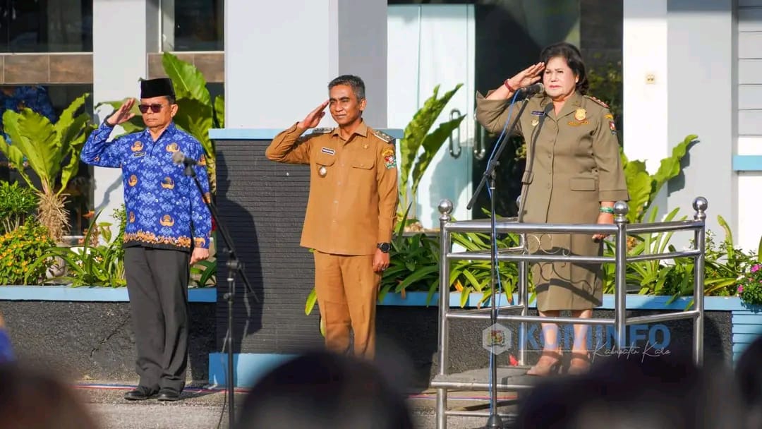 KARO (SUMUT) TEMPO86.COM//Bupati Karo, Cory Sriwaty Sebayang, didampingi oleh Wakil Bupati Karo, Theopilus Ginting, serta Plh. Sekretaris Daerah Kabupaten Karo, Dr. Drs. Eddi Surianta, M.Pd, memimpin Apel Gabungan di Kantor Bupati Karo pada Senin (17/2/2025).