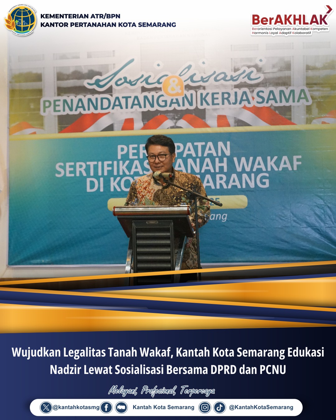 Wujudkan Legalitas Tanah Wakaf, Kantah Kota Semarang Edukasi Nadzir Lewat Sosialisasi Bersama DPRD dan PCNU
