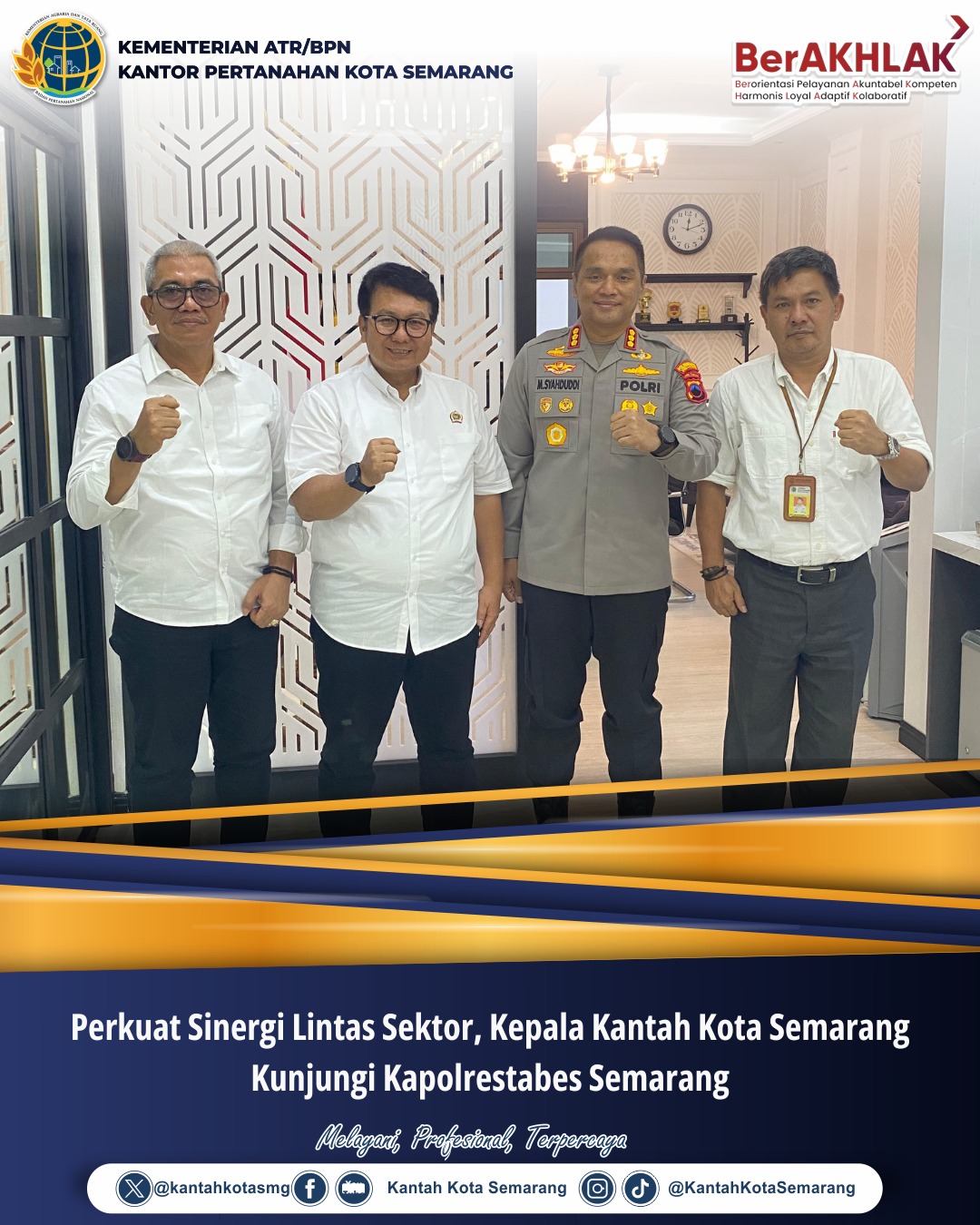 Sementara itu, Kombes Pol M. Syahduddi menyambut baik kunjungan tersebut dan menyatakan kesiapan jajaran kepolisian untuk terus mendukung kerja-kerja pertanahan, terutama yang menyentuh kepentingan masyarakat luas dan pembangunan kota Semarang.