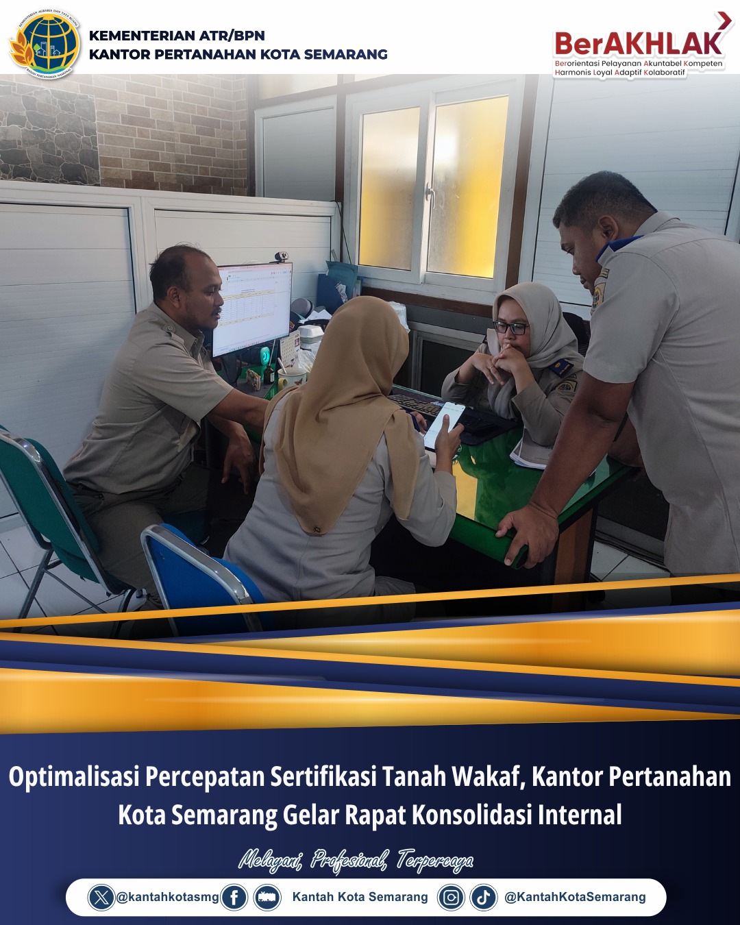Melalui sinergi internal dan konsistensi kerja sama lintas bidang, Kantor Pertanahan Kota Semarang berkomitmen untuk terus mendorong percepatan sertifikasi wakaf secara optimal, transparan, dan akuntabel.