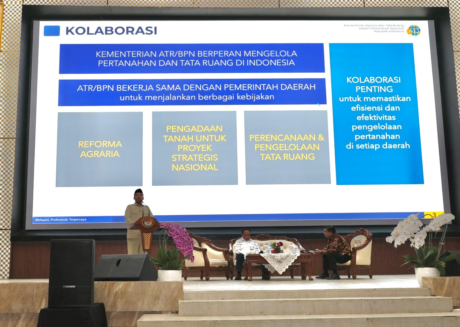 Sumedang – Menteri Agraria dan Tata Ruang/Kepala Badan Pertanahan Nasional (ATR/BPN), Nusron Wahid, memberikan pengarahan dalam Orientasi Kepemimpinan Kepala Daerah dan Wakil Kepala Daerah Tahun 2025 Gelombang II, yang berlangsung di Balairung Rudini, Institut Pemerintahan Dalam Negeri (IPDN), Sumedang, Jawa Barat, Rabu (25/06/2025). Dalam arahannya, ia menekankan bahwa kolaborasi dengan kepala daerah merupakan hal mutlak untuk menyukseskan program strategis nasional dalam bidang pertanahan dan tata ruang.