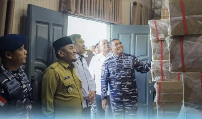 DUMAI (RIAU) TEMPO86.COM//Pangkoarmada I Laksamana Muda TNI Fauzi, S.E., M.M., M.Tr.Opsla., M.Han. melaksanakan kunjungan kerja ke Mako Lanal Dumai dalam rangka meninjau sekaligus memimpin pelaksanaan konferensi pers penangkapan penyelundupan rokok ilegal dengan total kerugian negara diperkiran sebesar 97 Miliar Rupiah.(02/07/2025).