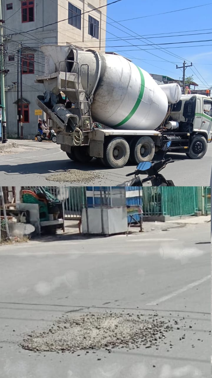 Berdasarkan pantauan di lokasi, satu unit truk molen diduga mengalami muatan berlebih menyebabkan campuran semen dan cor bercecer cukup parah di ruas jalan saat hendak belok dari Simpang Empat menuju Jalan Bintan. Material basah berupa campuran semen, pasir, dan kerikil itu menyebar di permukaan aspal, menciptakan ancaman serius, terutama bagi pengendara sepeda motor.
