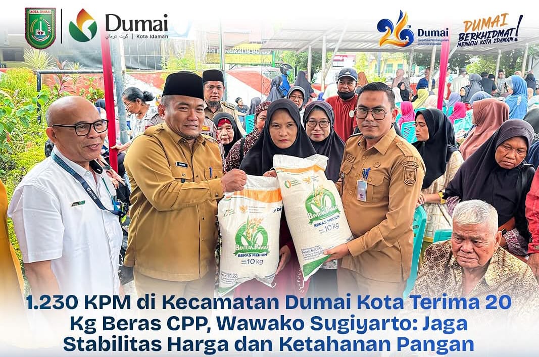 Penyerahan ini berlangsung di Halaman Kantor Camat Dumai Kota dan dihadiri oleh unsur Forkopimda Kota Dumai atau yang mewakili, Pimpinan Cabang Perum Bulog Dumai Yusnan MT Dongoran, Kadiskominfotiksan Dumai H Khairil Adli, Camat Dumai Kota Indra Safawi.Selasa (22/07/2025).
