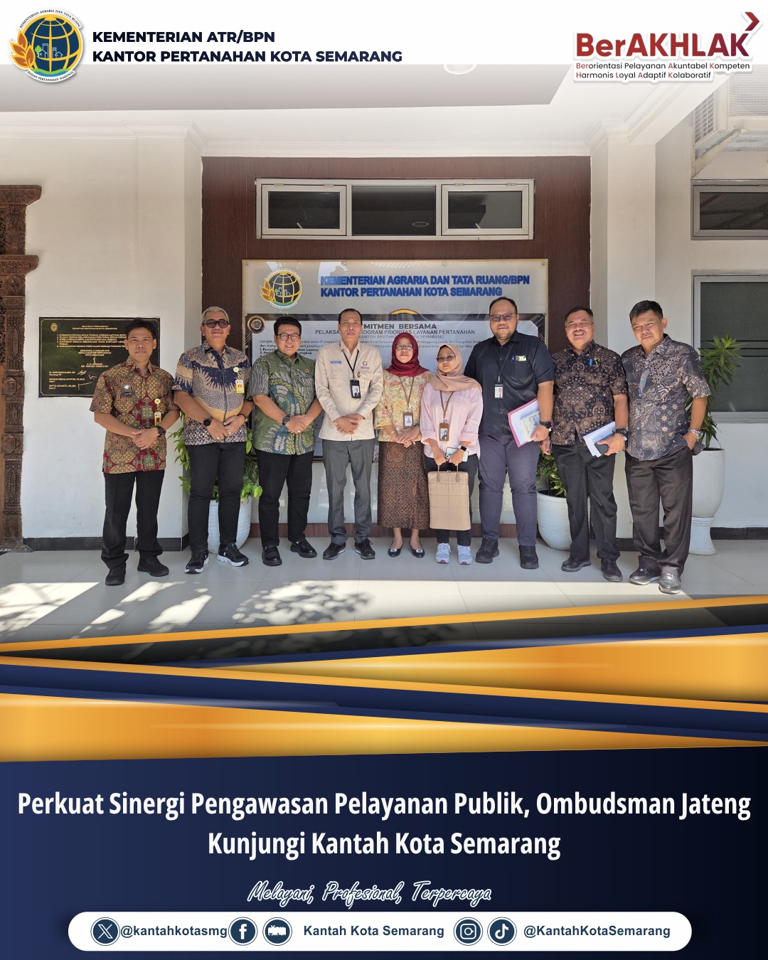 Semarang — Dalam rangka menindaklanjuti laporan masyarakat terkait dugaan maladministrasi, perwakilan Ombudsman Republik Indonesia Provinsi Jawa Tengah melakukan kunjungan kerja ke Kantor Pertanahan Kota Semarang, Kamis (31/07/2025).