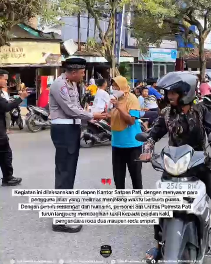 Mudah – mudahan dan kami berharap jajaran Polresta Pati dapat mengadakan dengan rutin giat bagi – bagi takjil, agar dapat membantu pengguna jalan dan bagi masyarakat yang membutuhkan.” Pungkas Kompol Riki mengatakan